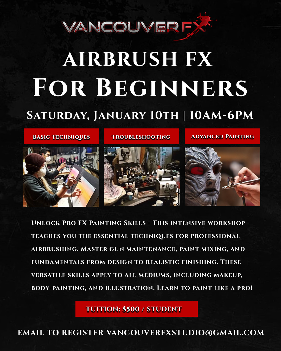 Ready to master the airbrush? Enroll today!π CALL (778) 968-4776 to register π§ EMAIL vancouverfxstudio@gmail.com